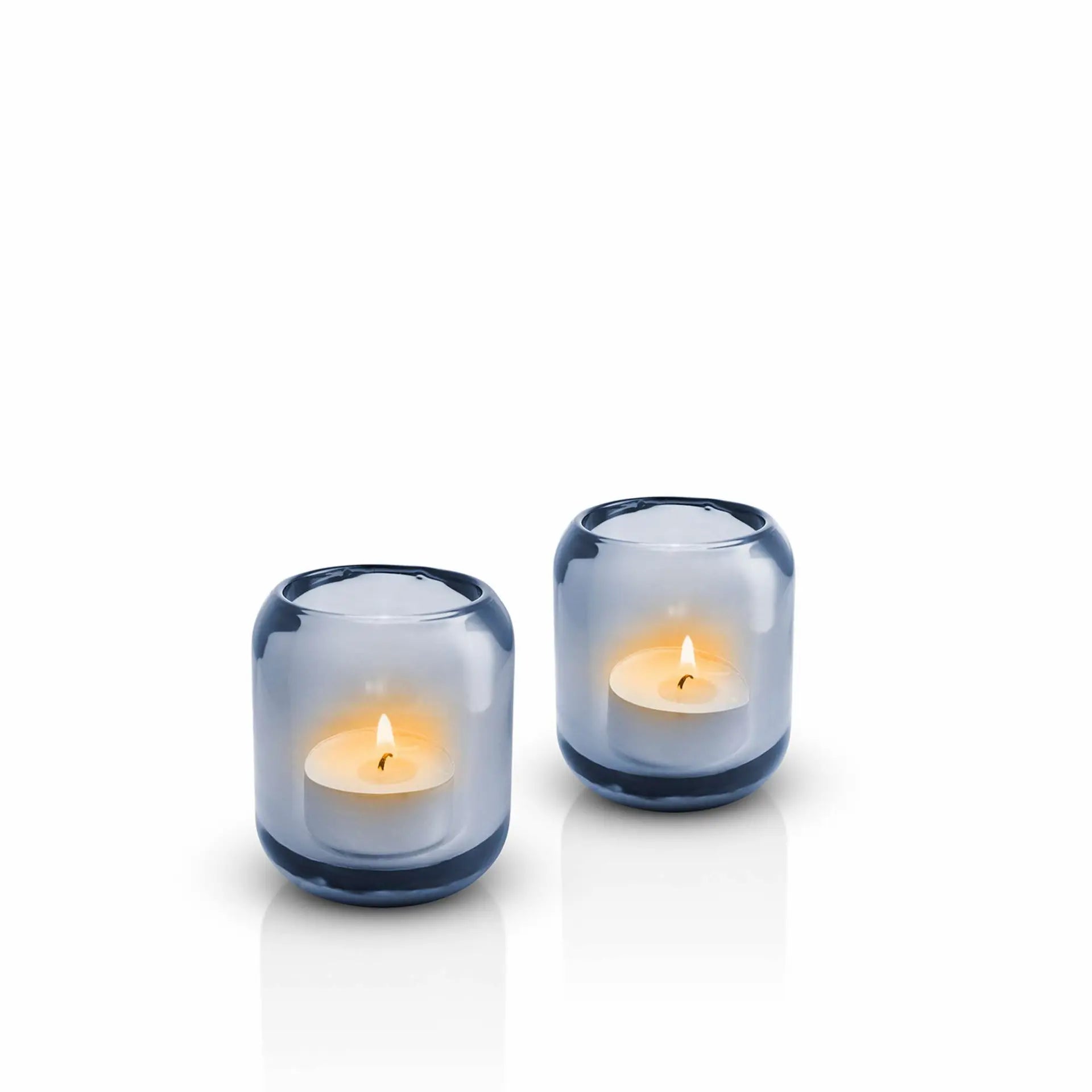 Create an ambience of candle-lit ‘hygge’ with these elegant tea light holders in coloured glass. Use the tea light holders individually or in pairs and enjoy the beauty of the flames reflected in the glass. The tea light holders are robust, designed for everyday use and dishwasher-safe.
