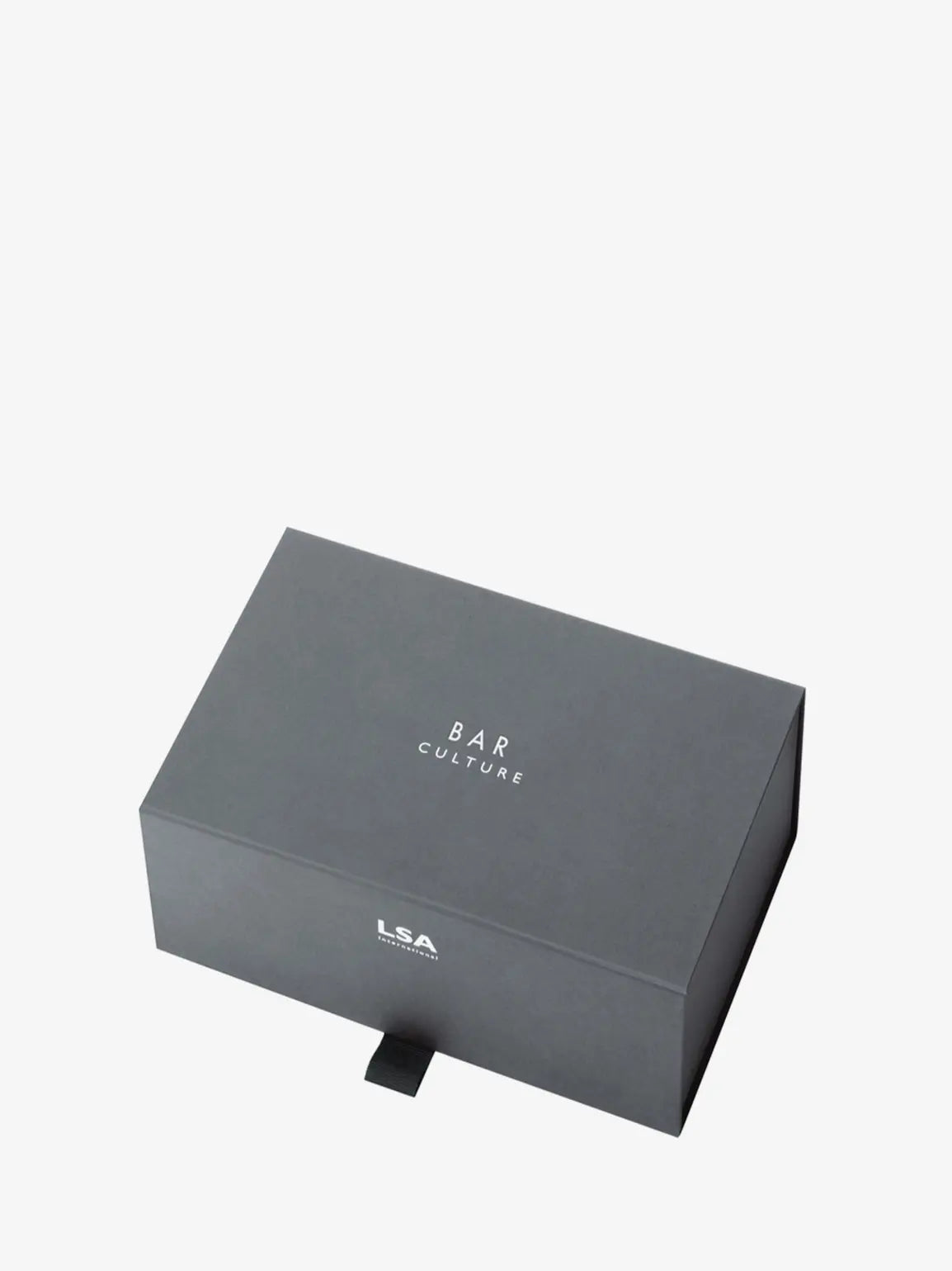 A contemporary glass ice bucket with heavy base and groove in its thick rim. Mouth blown by master glassblowers.