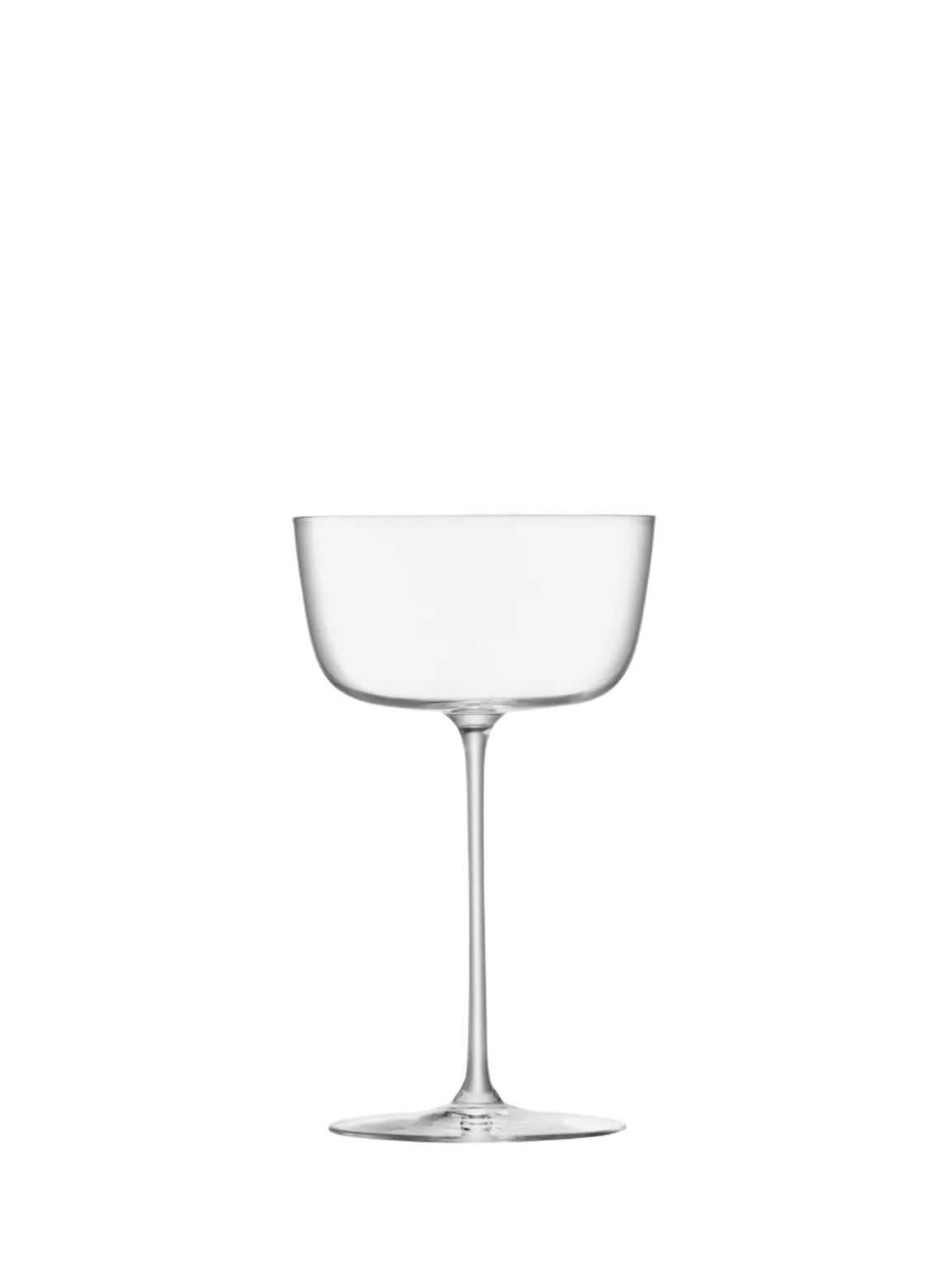 Set of four cocktail saucers with wide, flared bowls and fine straight stems. Designed for martini cocktails or champagne. Made from lead-free crystalline glass for clarity and strength.