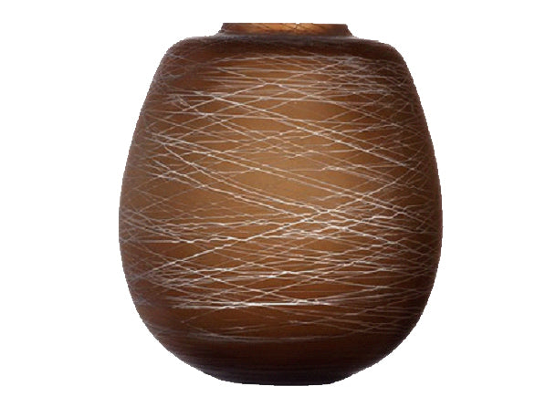 A mouth-blown glass vase inspired by the organic shapes of boulders. Expert craftsmanship is required to make each piece and apply its thread-like décor by hand. The smooth matte finish echoes the texture of stone. Add a few stems of flowers, dried grasses or display as a decorative object.