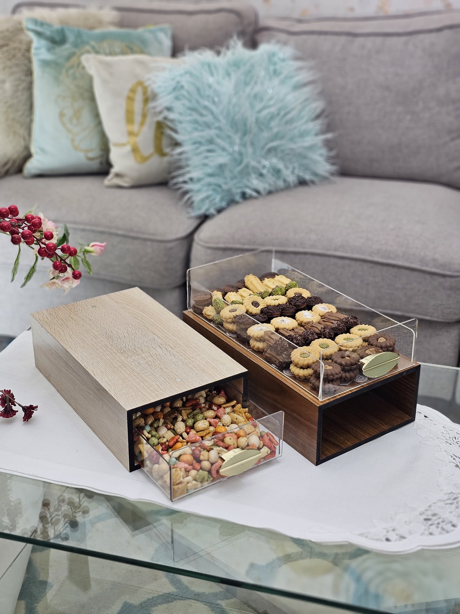 DR-L-BR | DR-S-BR SET of Rectangular & Square Nuts and Sweets Box Large Brown