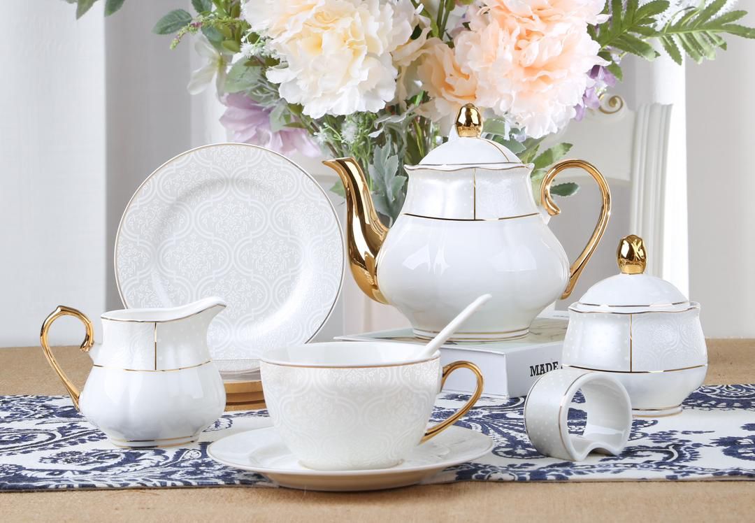 200cc Tea cup saucer x6+6 small spoon x6 tea pot 1+1 sugar Pot with lid 1+1 milk pot x1 napkin holder x2