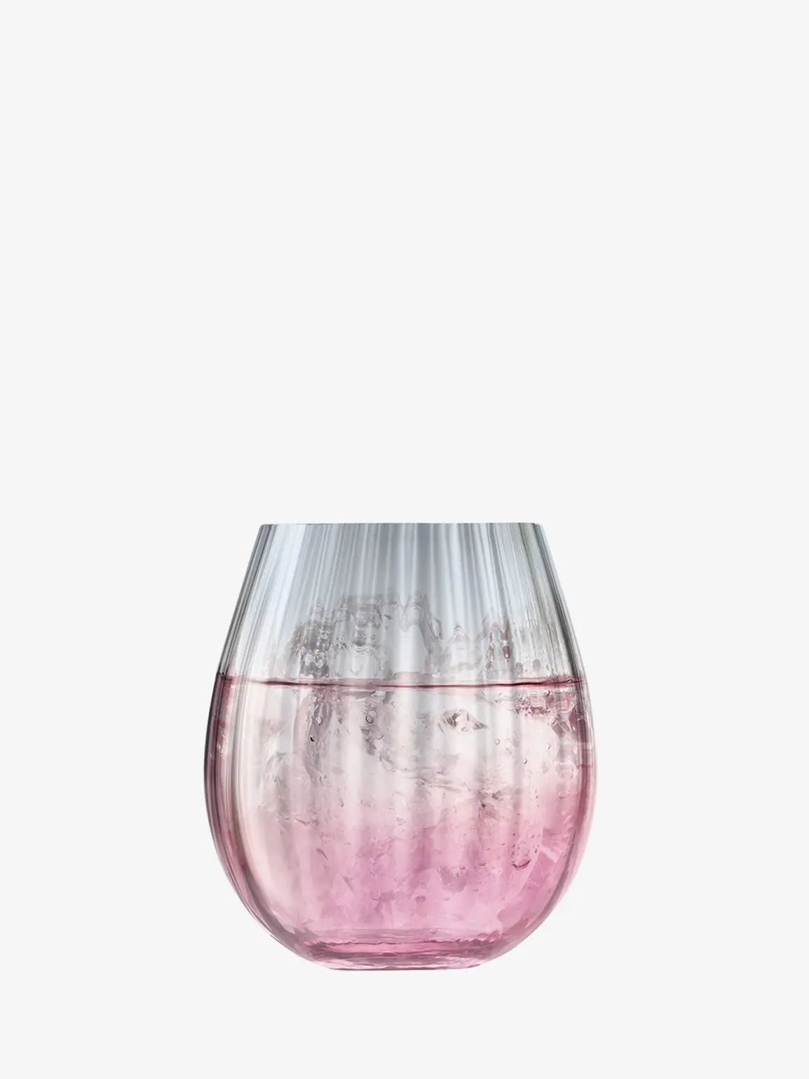 A pair of mouth-blown tumblers with fluted bowls, hand painted by skilled craftspeople in green and grey lustre. The sheer colours diffuse towards the centre of each piece. A versatile stemless glass for water, wine or cocktails.
