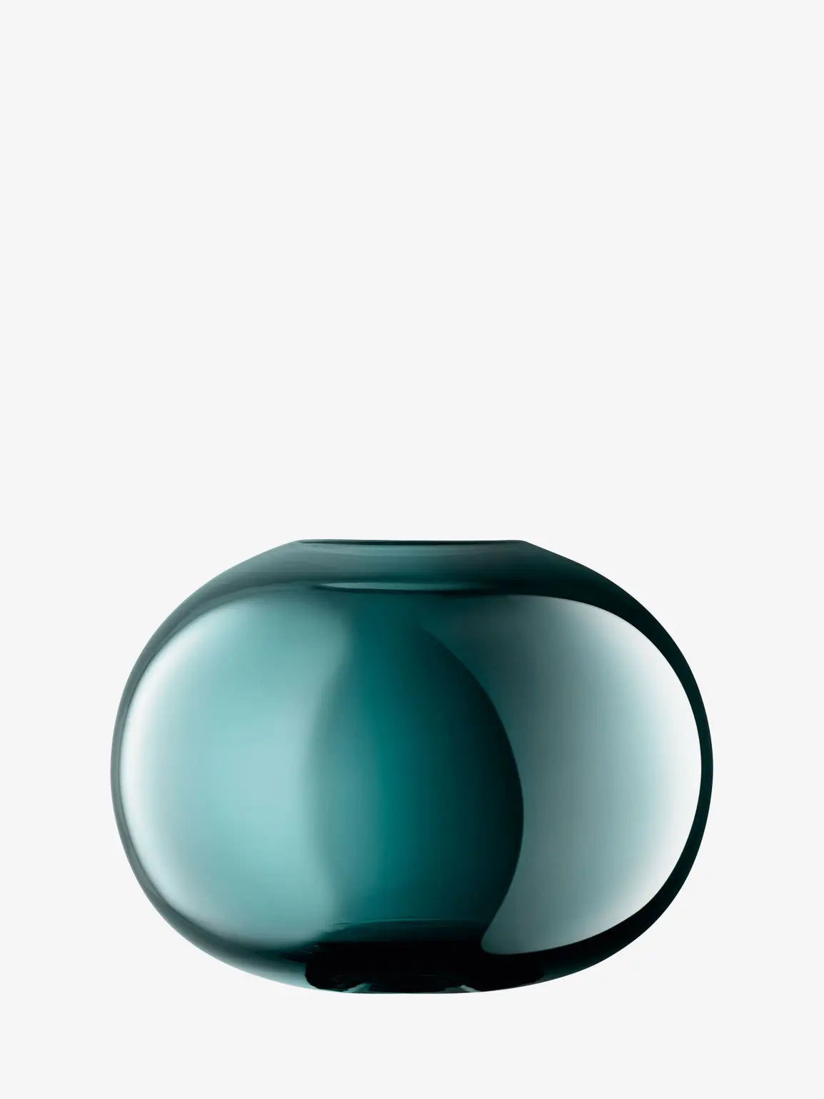 A low, rounded mouth-blown vase. Made from cased-coloured glass and decorated with iridescent lustre. For short stems of flowers or foliage.