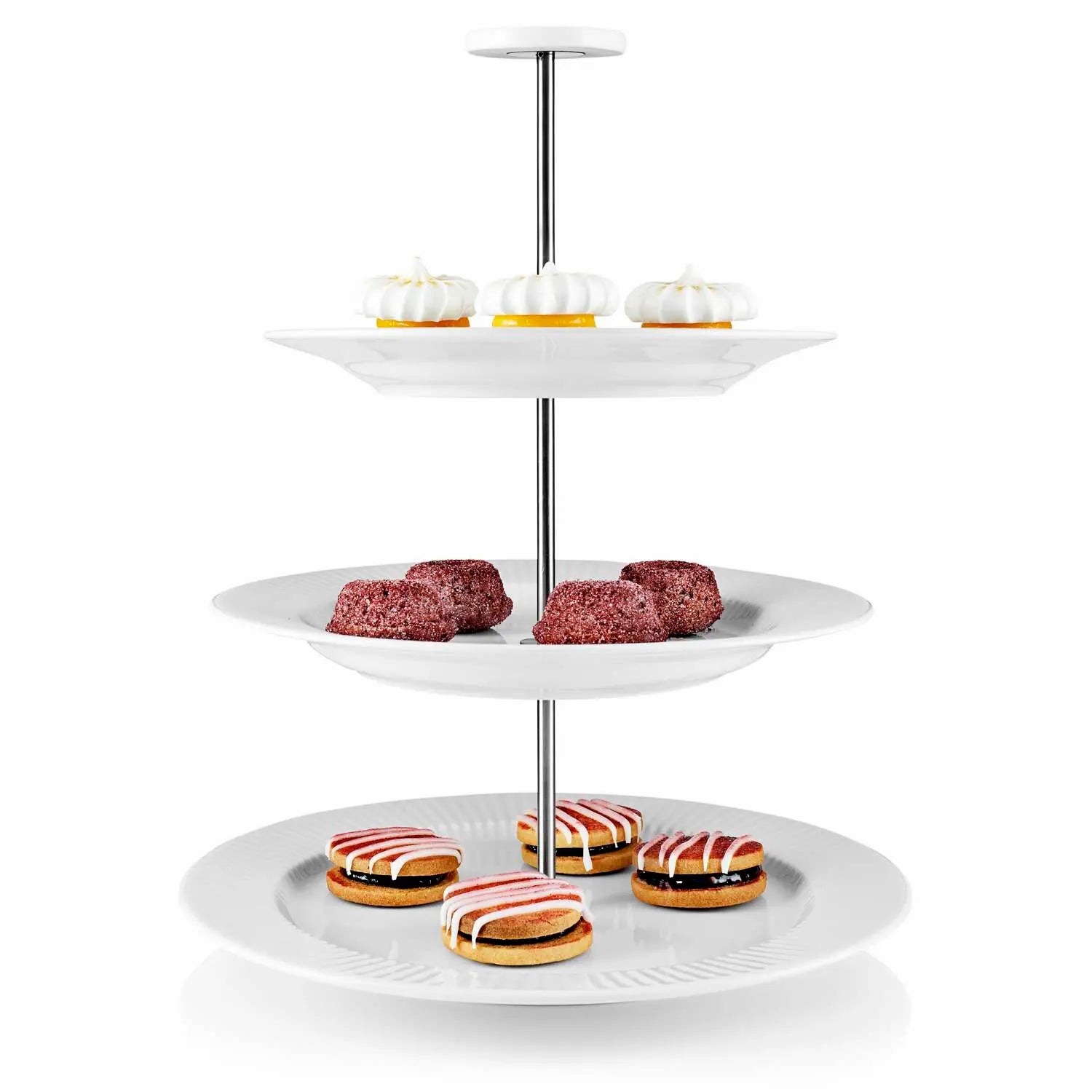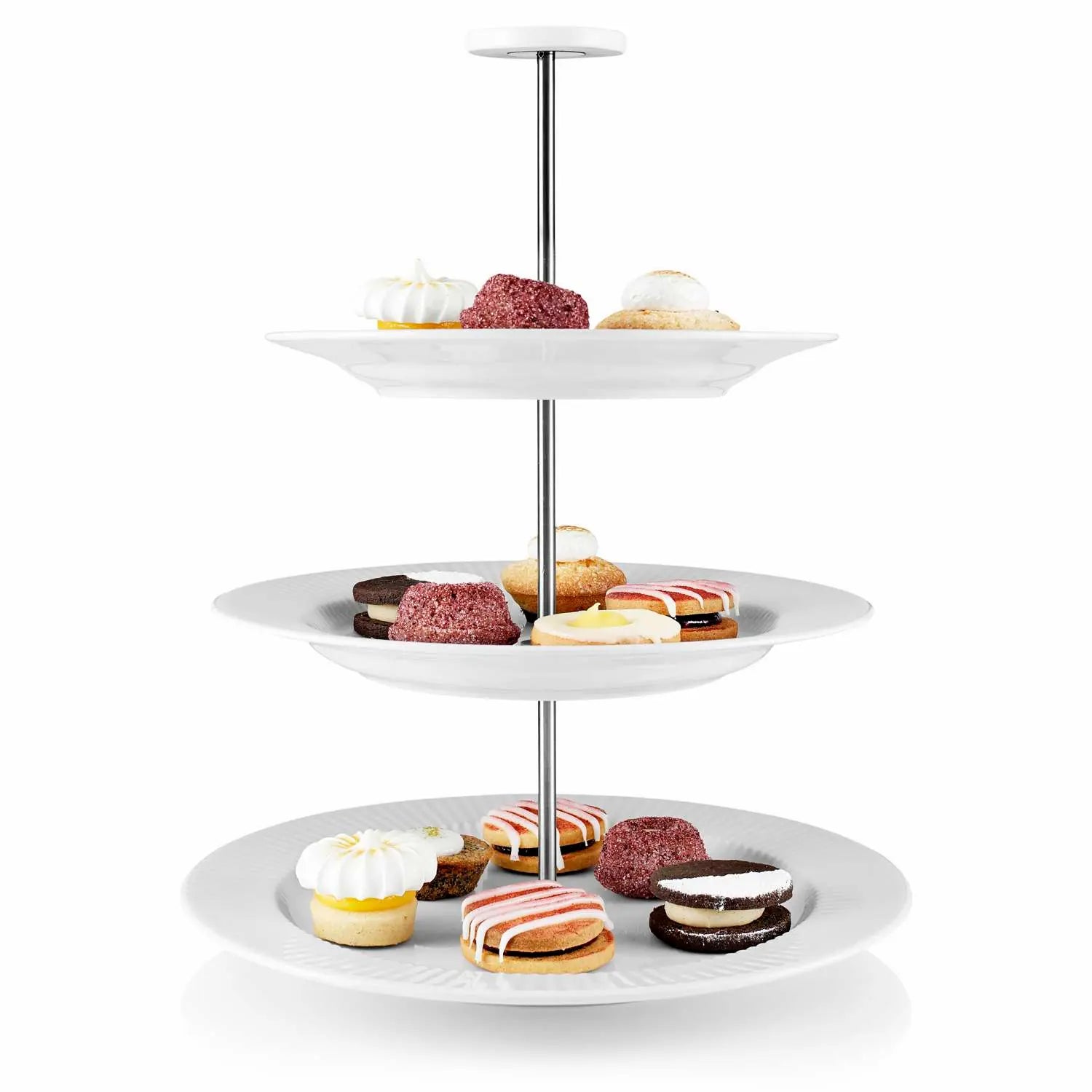 This classic three-tier stand is perfect for creating elegant and festive food displays. The étagière is particularly suitable for cakes, chocolates or fruit, for example. The classic three-tier stand is made up of three Legio Nova plates measuring 19, 22 and 25 cm in diameter. It is easy to disassemble, and takes up a minimum of space in the kitchen cupboard.