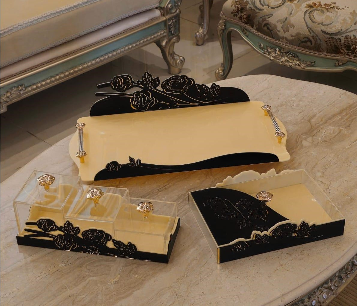 FLO-BK Set of Acrylic Tray and Containers Black (BX-FLO | NT-FLO | TR-FLO)