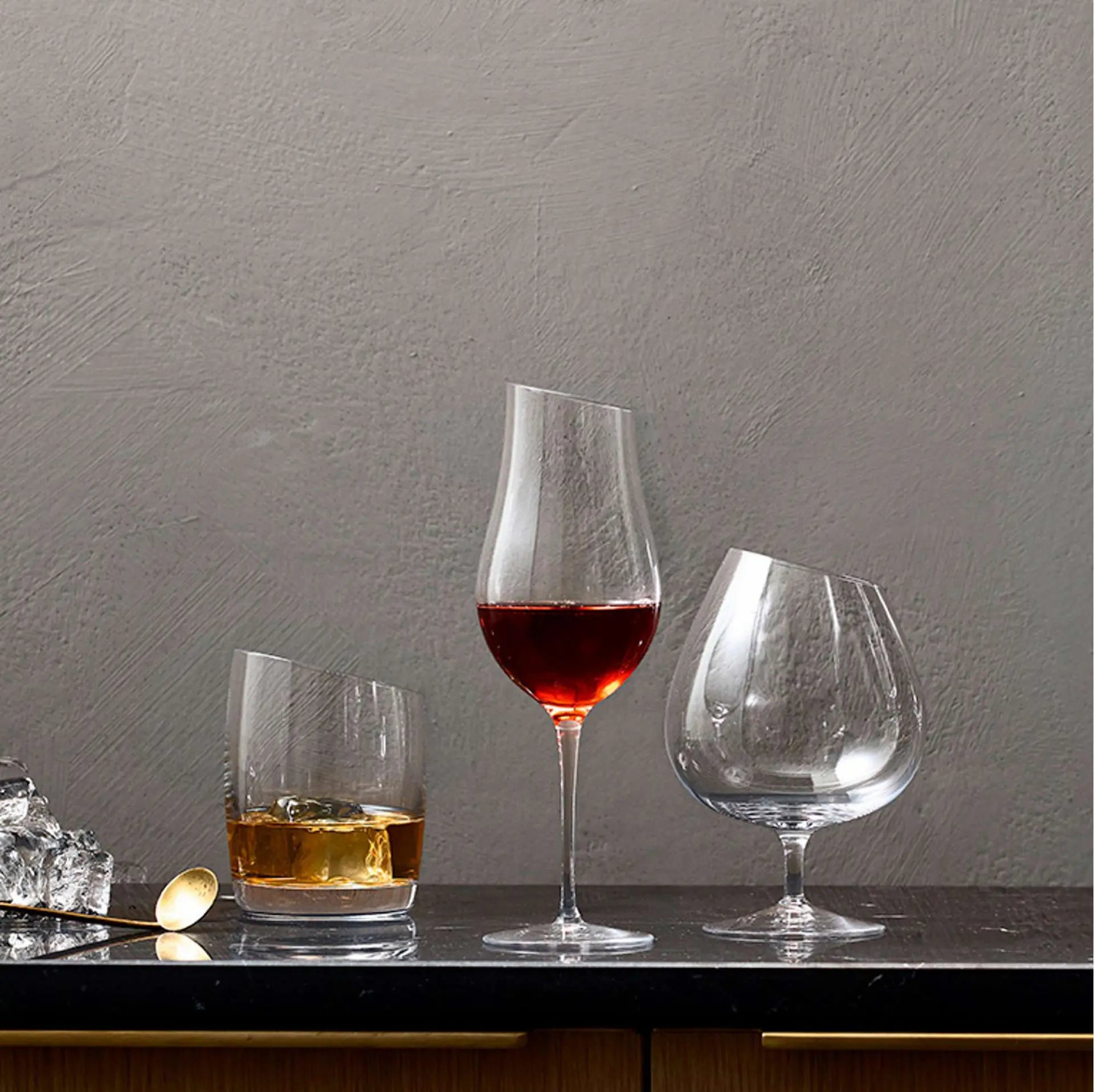 The liquor glass has an angled rim which enables you to fully savour all the aromas. The shape of the glass means that the volatised aroma molecules collect so they are more concentrated when they hit the nose. This optimises the taste experience, and allows the subtleties of the flavours and aromas to unfold. The liquor glass has been developed for different types of spirits, aperitifs and fortified wines such as rum, gin, calvados and sherry.