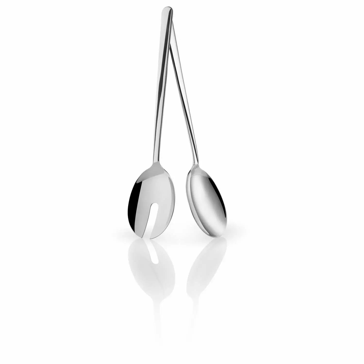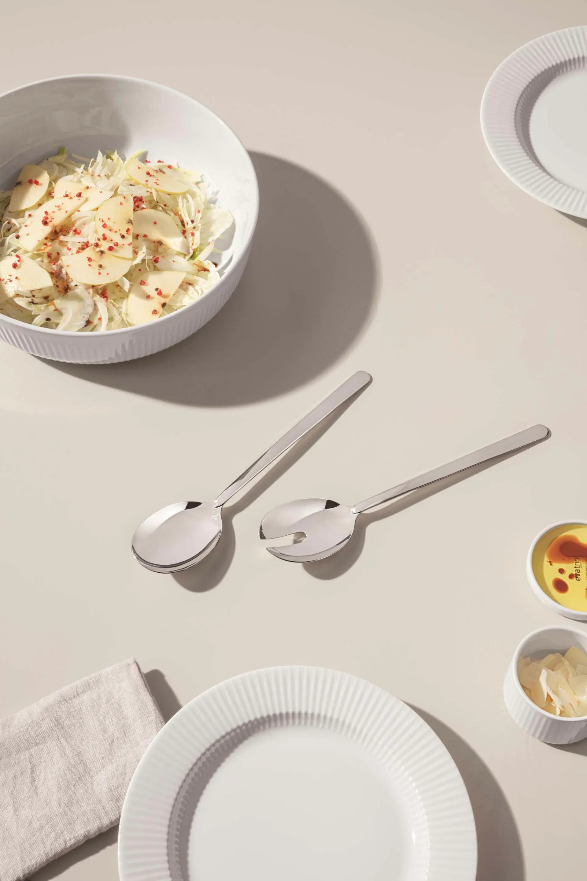 Timeless and stylish salad set with a classic and modern look, making it equally suitable for everyday use and festive occasions. Perfect for serving both salads and pasta. The Legio Nova salad set matches the Eva Trio Legio Nova tableware with its elegant signature grooves, repeated here on the handles of the spoons, which sit well in the hand. Dishwasher-safe.