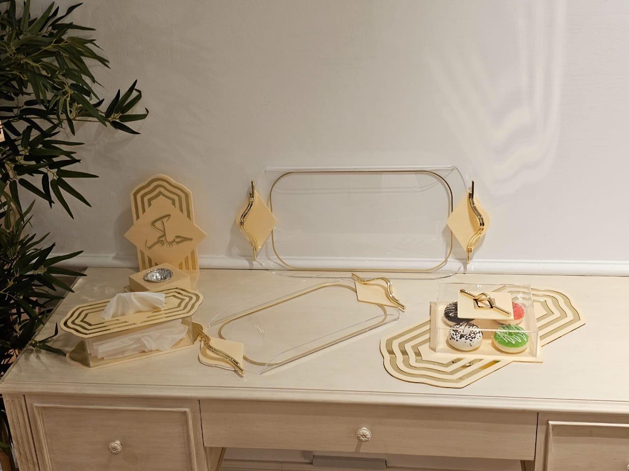 SQ BK Set of Acrylic Serving Box, Incense Burner, Tray and Tissue Box - BEIGE (TU-SQ | BR-SQ | BX- SQ | TR-M-SQ | TR-L-SQ)