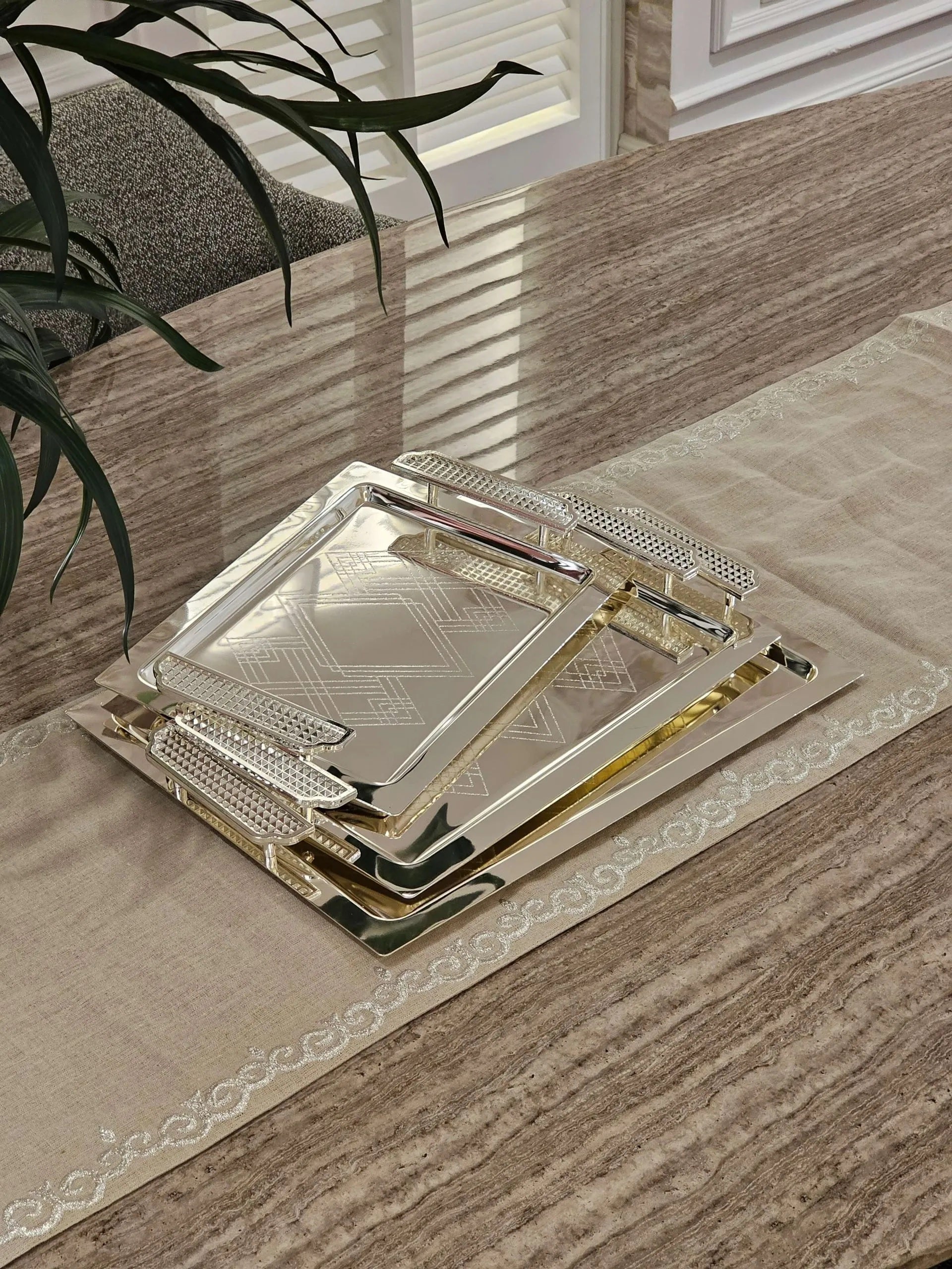 TR-444-S Hospitality & Serving Trays Set with cover - SILVER (TR44-S-S | TR444-M-S | TR444-L-S)