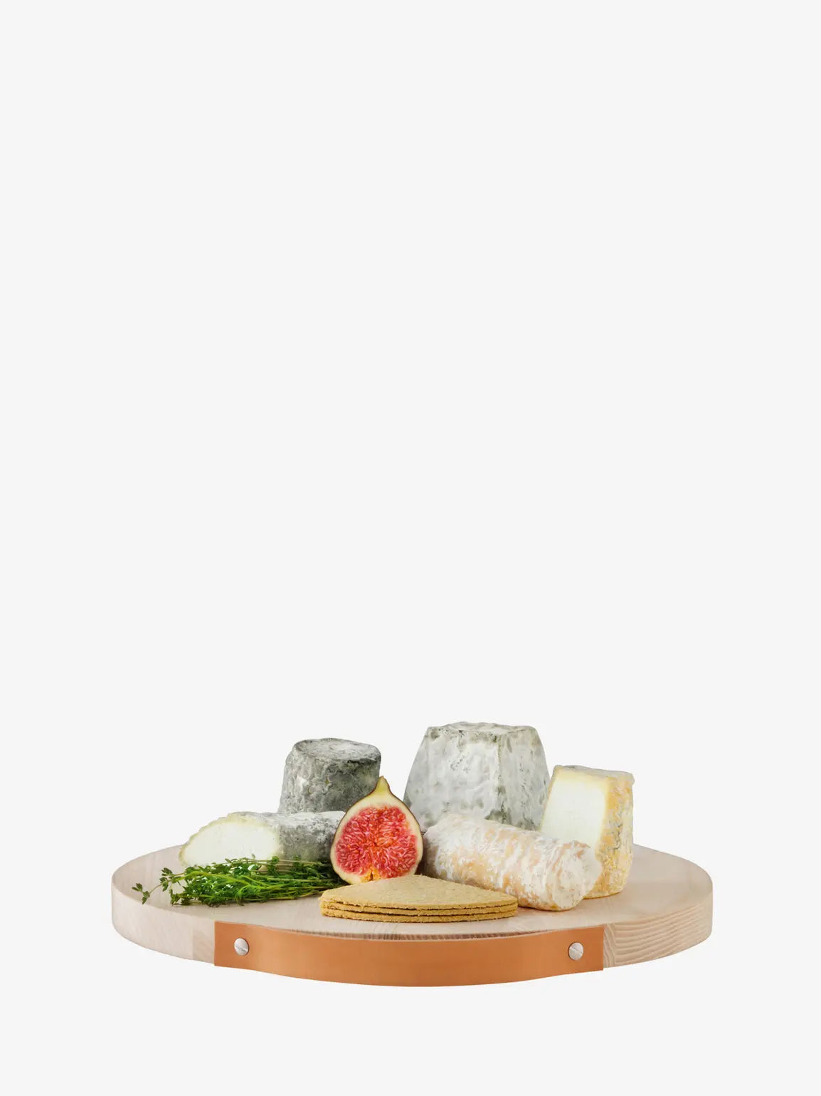 A small, solid wooden board made from sustainably-sourced ash. Finished with a thick, leather strap handle. Designed for chopping and serving bread, cheese and charcuterie. Treat with food safe oils or leave to mature and colour naturally.