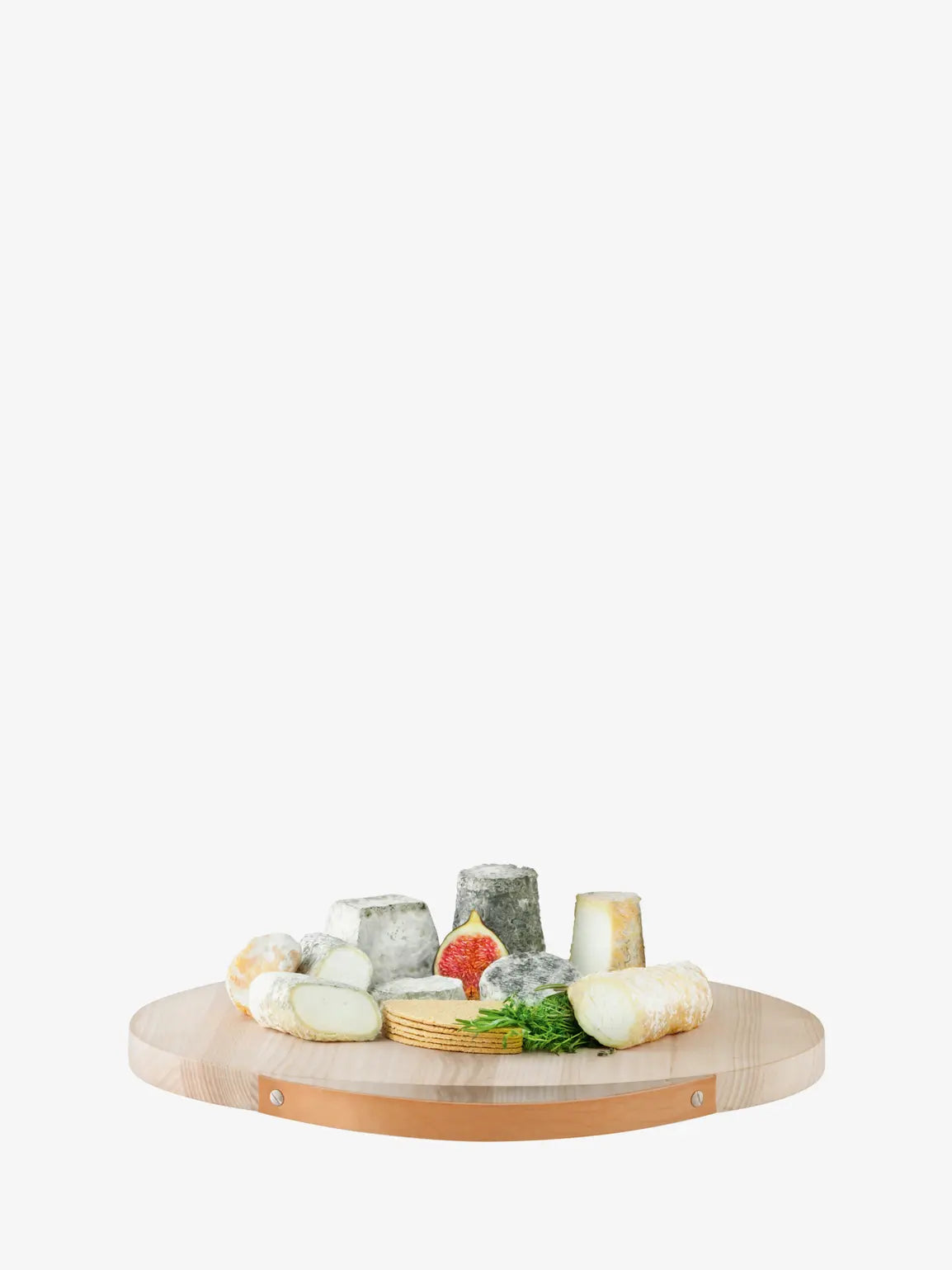 A small, solid wooden board made from sustainably-sourced ash. Finished with a thick, leather strap handle. Designed for chopping and serving bread, cheese and charcuterie. Treat with food safe oils or leave to mature and colour naturally.