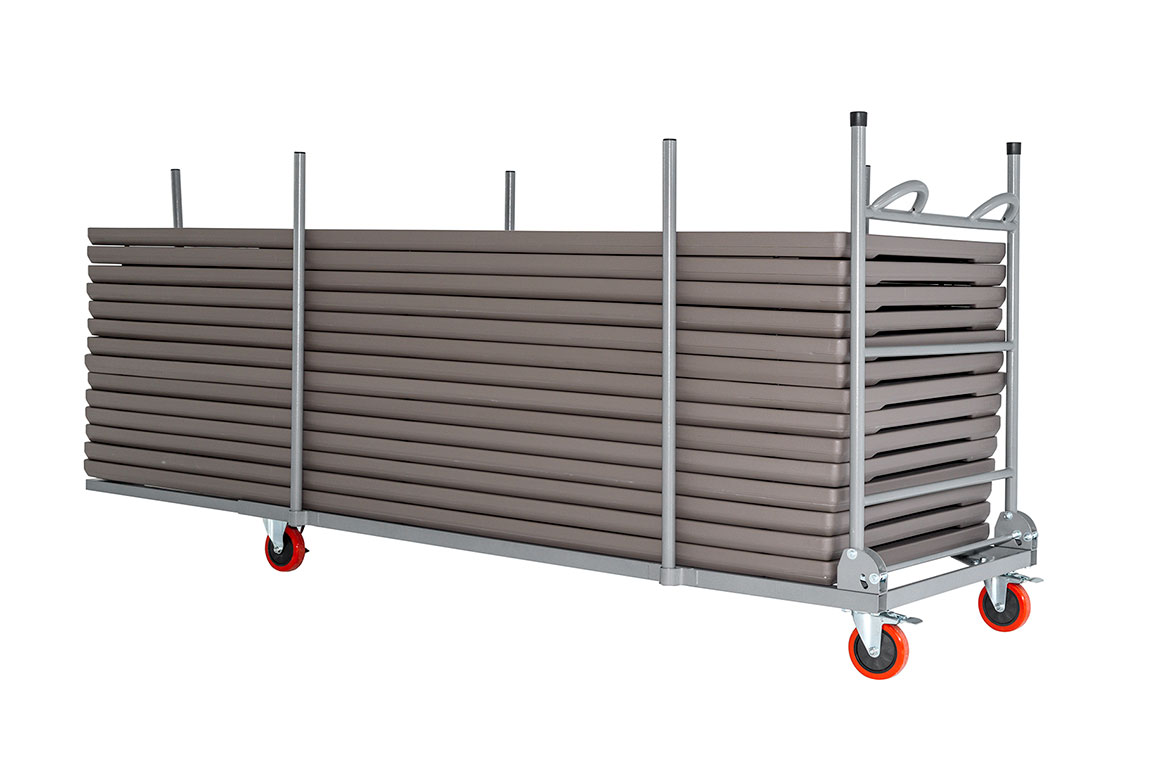Folding trolley for table widths 75 and 76 cm. Extendable base from 193 to 254 cm to adapt it to different lengths. Suitable for transporting the following tables: XL120, XL150, XL180, Worktop180, XL240, XL4, XL6 and XL8.